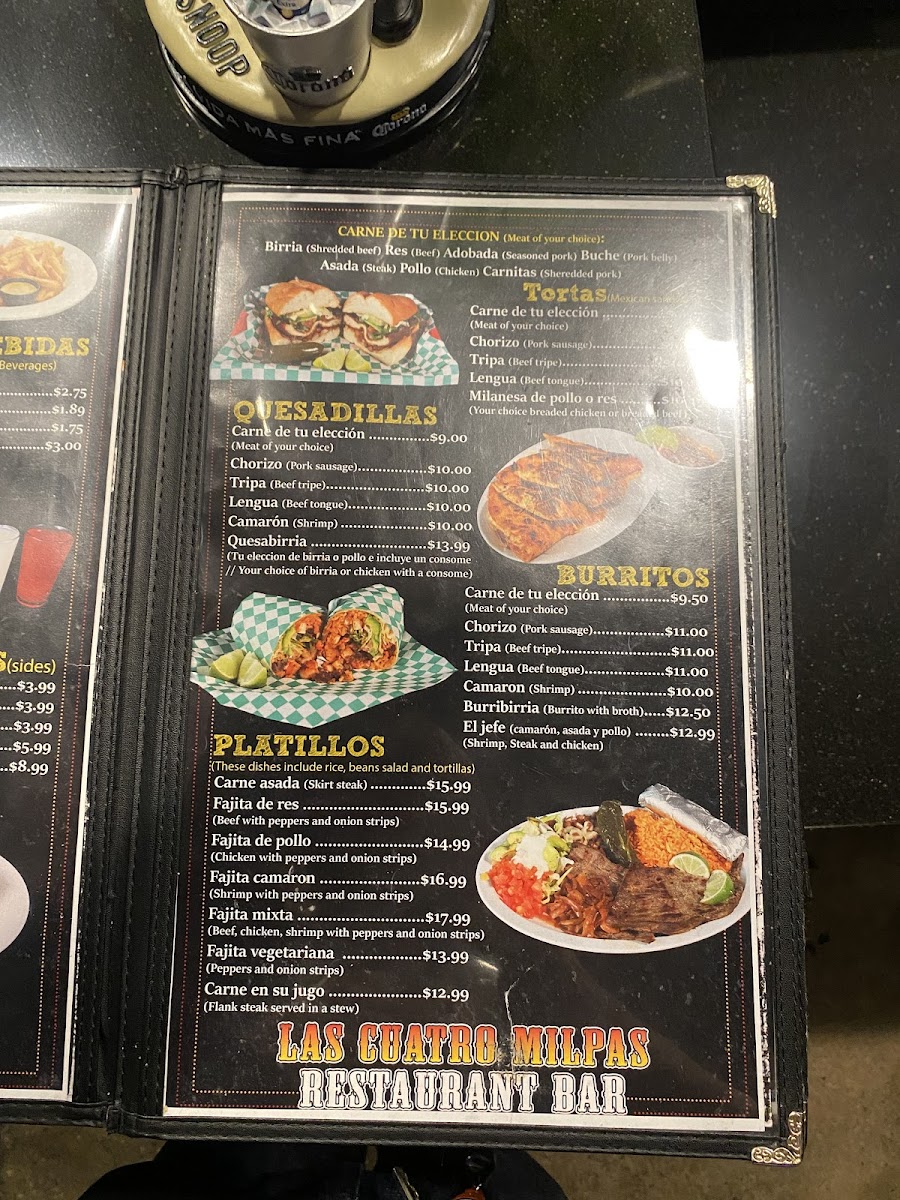 Taqueria y Birreria Las Cuatro Milpas prides itself on delivering a culinary experience that transports guests directly to Mexico. The menu is a celebration of rich traditions and flavors, offering a range of dishes that highlight the essence of authentic Mexican cuisine. You simply cannot miss their exceptional Camarones Al Cilantro, shrimp prepared with a signature cilantro recipe served alongside rice and a fresh salad. Priced at $20.99, this dish is a testament to the restaurant's commitment to quality and freshness.